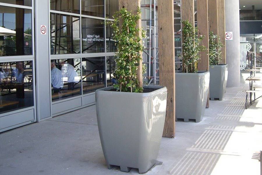 The grey planter pots were custom painted for the MCG members area, while the gloss black planter pot in our gallery was custom painted for Chadstone shopping centre.